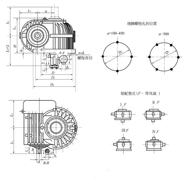 | 型號(hào)\尺寸 | a | B1 | B2 | C1 | C2 | h | H | H1 | d3 | i≤12.5 | ||||